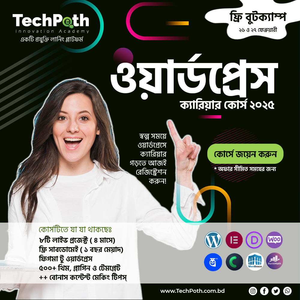 আমাদের এই কোর্সটি সাজানো হয়েছে একদম বেসিক থেকে অ্যাডভান্সড লেভেল পর্যন্ত। যারা বিগিনার ওয়ার্ডপ্রেস সম্পর্কে কিছুই জানেন না বা কোন টেকনিক্যাল জ্ঞান নেই। তারাও এই কোর্সটিতে জয়েন করতে পারবেন। আমরা গ্যারেন্টি দিয়ে বলতে পারি আপনি এই কোর্সের মাধ্যমে ভাল কিছু শিখতে যাচ্ছেন।